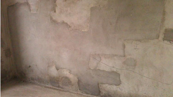 墻體本身開裂或傾斜的住房墻面出現(xiàn)裂跡,有兩種情況:墻面本身有裂跡,后期修理過,但處理不當,另一種,墻體無裂跡,因后期地基沉降不均,溫度變化有差異,導致墻面出現(xiàn)裂紋。